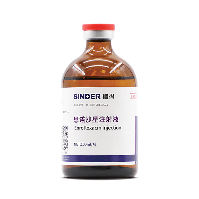 Ce produit est rapidement et complètement absorbé par injection intramusculaire, et la biodisponibilité est de 91,9 % chez les porcs et de 82 % chez les vaches laitières.Il est largement distribué chez les animaux et peut bien pénétrer dans les tissus et les fluides corporels.À l'exception du liquide céphalo-rachidien, la concentration du médicament dans presque tous les tissus est supérieure à celle du plasma.Le métabolisme hépatique consiste principalement à éliminer le cycle éthyl 7-pipérazine pour produire de la ciprofloxacine, suivie d'une oxydation et d'une liaison à l'acide glucuronique.Il est principalement excrété par le rein (excrété par les tubules rénaux et filtré par le glomérule), et 15 % à 50 % de celui-ci est excrété par l'urine sous sa forme originale. La demi-vie d'élimination varie considérablement selon les espèces animales et les différentes voies d'administration.La demi-vie d'élimination après injection intramusculaire est de 5,9 heures pour les vaches, de 9,9 heures pour les chevaux, de 1,5 à 4,5 heures pour les moutons et de 4,6 heures pour les porcs.